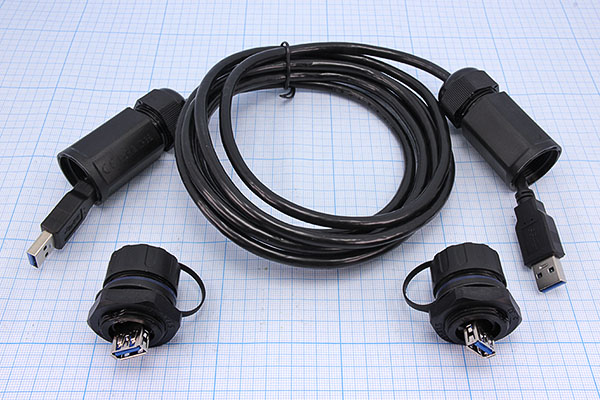 шнур гнездо USB A 9C-гнездо USB A 9C  | 3,0м  | Ni/пл  | чер  | IP68  |