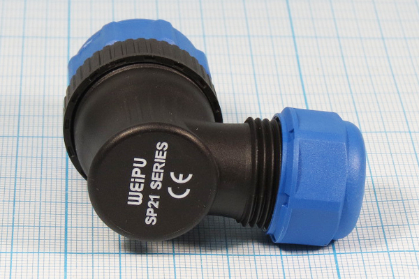 Розетка кабельная угловая SP2116/S2II1N, пластик, резьба, монтаж: пайка, контактов: 2 x 3мм, ток: 30A, напряжение: 500V, IP68, на кабель: 7-12 мм, без крышки. Ответные части - вилка межкабельная Q-10752 SP2111/P2, вилка на панель Q-10750 SP2112/P2. В магазине на Буженинова, 16: